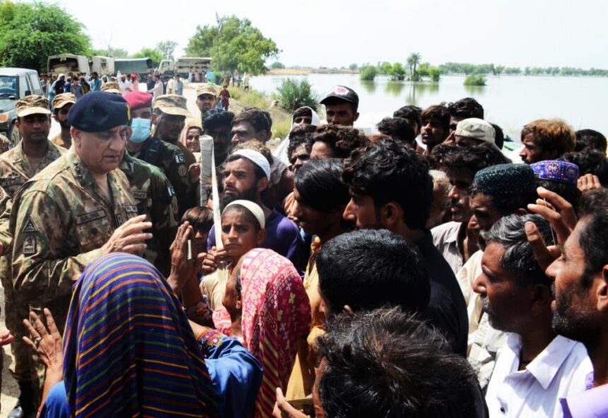 Islamabad: Chief of Army Staff General, Qamar Javed Bajwa visited the flood hit areas of Swat on Tuesday August 30, 2022 in order to get on ground updates related to the expulsion of stranded people and to review the relief operations in the areas of Kumrat, Kalam and surrounding territories.